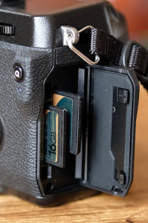 La présence de deux ports d\’entrée pour cartes mémoires SD accroit significativement l\’autonomie du Fujifilm X-H1. Couplé avec le poignée d\’alimentation VPB-XH1, vous obtiendrez suffisamment d\’énergie et d\’espace-mémoire pour une journée et plus de prises de vues sans entrainer de changement d\’accus ou de cartes. Bien sûr certains frénétiques du déclenchement incontrôlé pourront me contredire mais, au fait, que font-ils de toutes ces images (semblables)? Car nous parlons d\’une capacité moyenne de 1000 prises de vues pour les trois piles-accus (boitier + poignée) et de plus du double pour deux cartes mémoires de 32GO ou mieux. Pour fin d\’ironie historique, on parle bien de l\’équivalent de plus de 27 cartouches de 36 poses en format 35mm film…