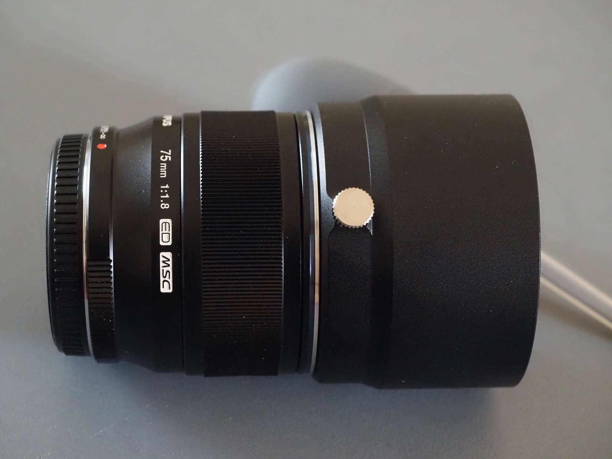 The “made in Japan” Olympus M.Zuiko ED 75mm F1.8 is rather compact lens weighing little over 300g (305). With a physical length of less than 7 cm and a diameter of less than 6.5 cm, the telephoto optic is doted of a filter accessory size of 58mm. A large focusing ring offers a light turning resistance for precise manual focusing but no auto/manual focus clutch* is present as for many Olympus Pro lenses. No accessory lens hood is included into the manufacturer box and it is rather expensive optional accessory to add.